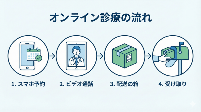 「オンラインでどうやって診察するの?」と疑問に思うかもしれませんが、流れは非常にシンプルです。