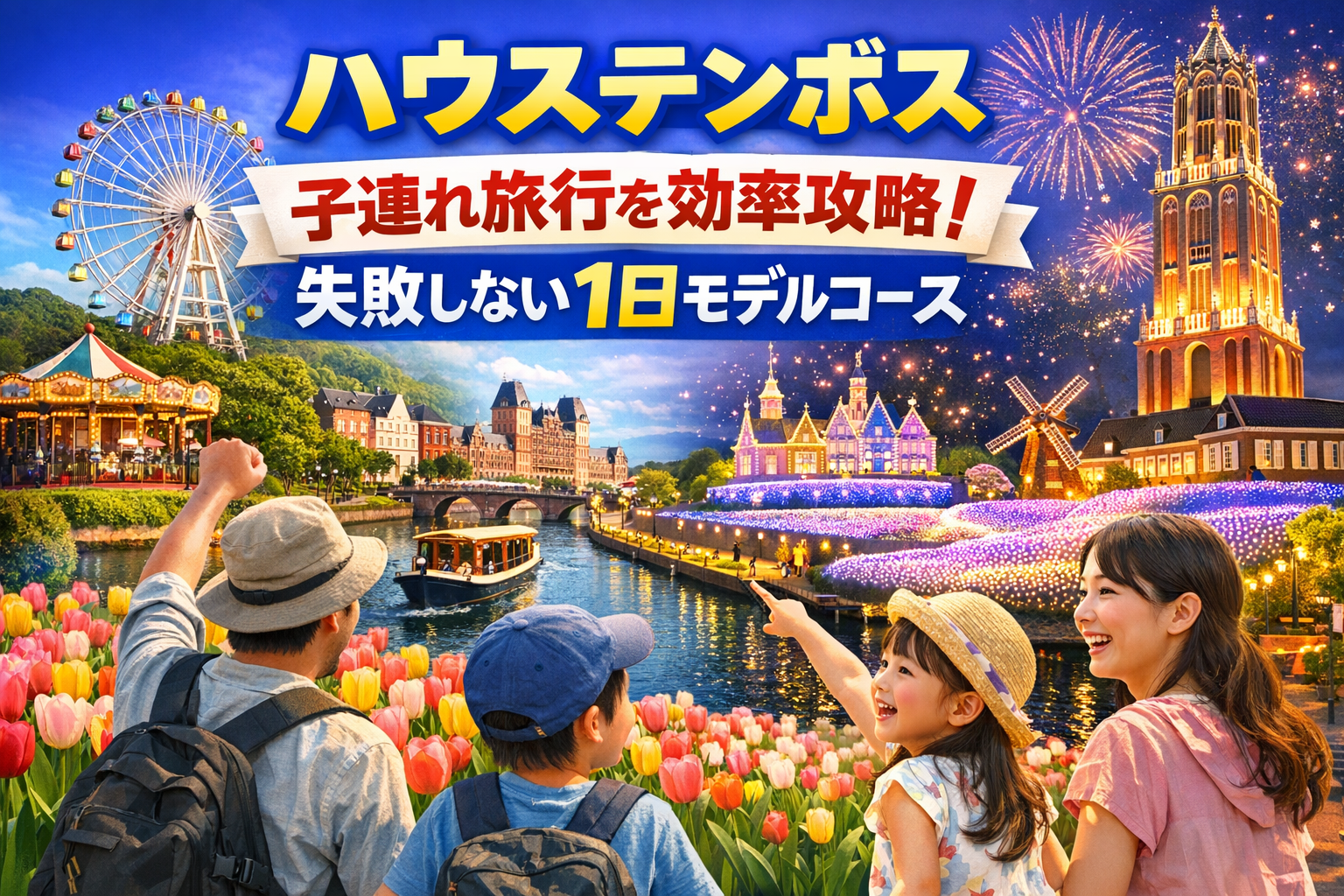 子どもを連れてのテーマパーク旅行は、楽しみな反面「待ち時間に耐えられる?」「移動だけで疲れない?」「回りきれずに後悔しない?」と不安も多いですよね。とくにハウステンボスは敷地が広大です。計画なしでは、体力も時間も浪費します。この記事では、子連れ旅行でも無理なく満足度を最大化する回り方を具体的に解説します。年齢別の攻略法、効率的な動線、休憩スポットまで網羅。読めば「迷わない1日」が手に入ります。