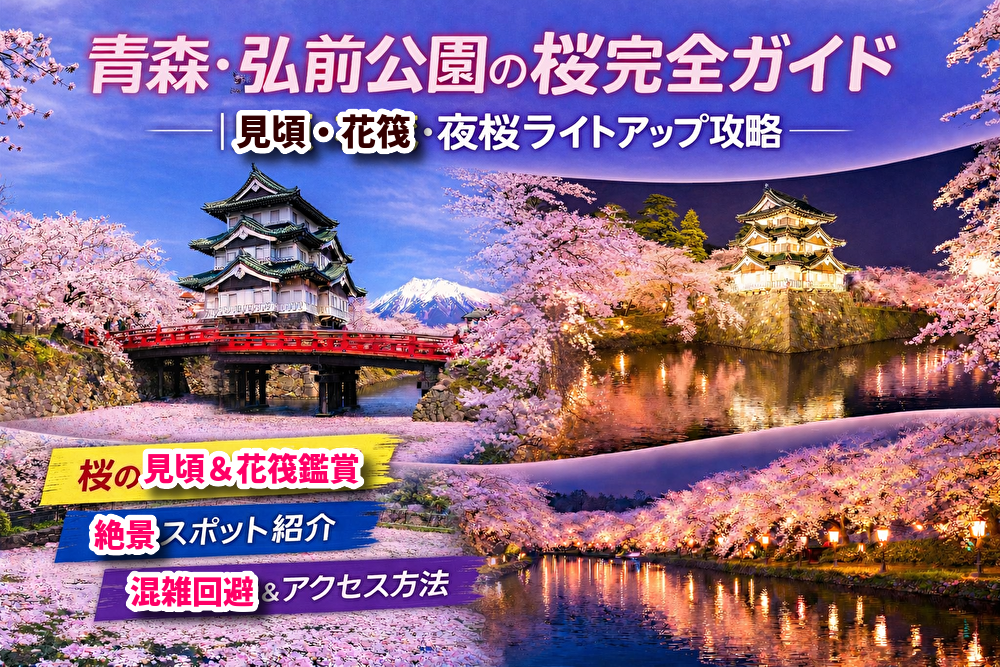 春の東北旅行を計画するなら「弘前公園の桜はいつ行けばいい?」「花筏は見られる?」「混雑を避ける方法は?」と迷う方が多いです。せっかく遠方から訪れるなら、最も美しいタイミングと効率的な回り方を知っておきたいところです。弘前公園の桜は、日本屈指の密度と景観設計で知られ、見頃の数日間は全国トップクラスの絶景になります。この記事では、見頃・花筏・ライトアップ・混雑回避・アクセスまで旅行前に必要な情報を整理しました。
