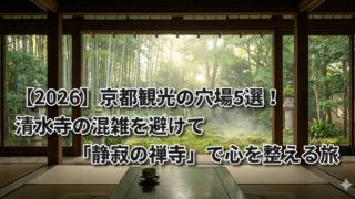 【2026年最新】オーバーツーリズムの京都で人混みを避ける秘策を公開!清水寺や嵐山の喧騒を離れ、直指庵や宝泉院など「真の静寂」を味わえる穴場禅寺5選を徹底解説。バスに乗らない移動術や、地元商店街でのグルメ活用法など、2026年の京都を賢く、静かに楽しむための完全ガイドです。