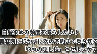 美容院での白髪染め頻度を減らしたい方必見。次の予約まで快適に乗り切る「3つの隠し技」と、失敗しないカラートリートメントの選び方(スカルプD・マイナチュレ・綺和美)を紹介。お金と髪のダメージを抑える賢いセルフケア術です。